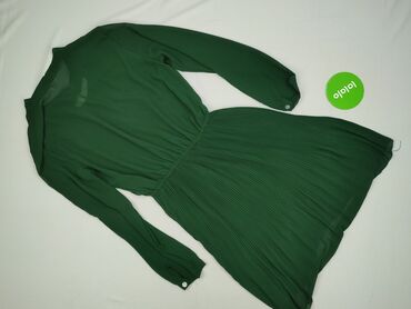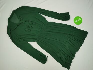 Zielona sukienka z długim rękawem - Fason: rozkloszowany dół, marszczenie i drapowanie w talii podkreślające sylwetkę - Dekolt: kopertowy/V - Długość: do kolan (na podstawie proporcji ze zdjęć) - ...