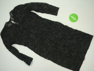 Czarna sukienka koronkowa - Fason: prosta, lekko dopasowana, przed kolano - Materiał: ażurowa koronka o kwiatowym wzorze; podszewka w części zasadniczej (rękawy półprzezroczyste) - Dekolt: okrągły...