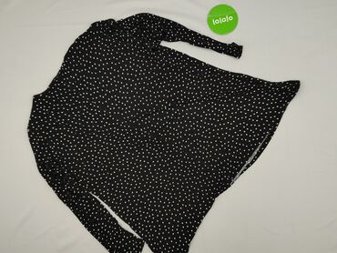 Bluzka damska w grochy - Kolor: czarny w białe kropki - Krój: luźny, lekko wydłużony tył, krótkie rękawy - Dekolt: zaokrąglony z krótkim rozcięciem z przodu - Detale: dwie dekoracyjne, metaliczne ...