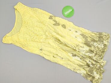 Sukienka damska bez rękawów – intensywnie żółta - Fason: midi, rozkloszowany dół - Góra: dekolt w kształcie litery V z krótką patką i dwoma guzikami - Talia: szeroka, elastyczna gumka podkreślając...