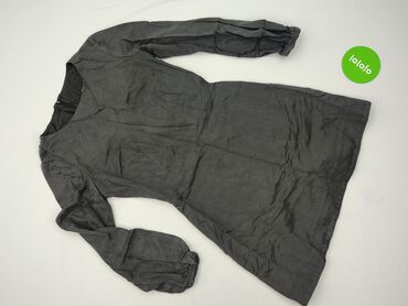 Sukienka dzianinowa SIMPLE, rozmiar 34 - Kolor: grafitowy melanż - Fason: prosta, lekko oversize, długość za kolano - Krótki rękaw z wywinięciem w jaśniejszym odcieniu - Dekolt okrągły, wewnętrzna...