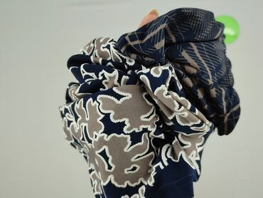 Sukienka damska z dzianiny, półdopasowana, w etniczny/ornamentalny wzór paisley i kafelkowe motywy. Kolorystyka: granat, błękit, biel i szarości. - Fason: prosta linia, długość za kolano/midi, ręk...