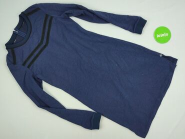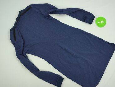 Sukienka dzianinowa BASIC, rozmiar XS - Fason: dopasowany, prosta linia - Długość: przed kolano (mini/krótka) - Rękaw: długi - Dekolt: okrągły - Kolor: granatowy melanż - Materiał: miękka, elastyc...