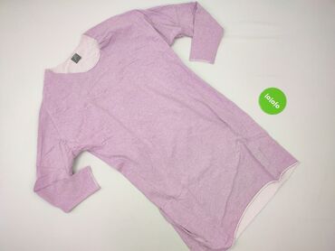 Sukienka dzianinowa w kolorze liliowym (jasny fiolet) - Krój: prosta, luźna, midi/za kolano - Rękawy: długie z marszczeniem przy mankietach (delikatna falbanka) - Dekolt: okrągły - Tkanina: miękka...Stan:
