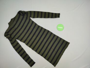 Sukienka dzianinowa w paski - Fason: dopasowany, ołówkowy, długość do kolan - Rękaw: długi - Dekolt: okrągły/łódkowy - Wzór: poziome biało‑granatowe paski na górze i rękawach, pionowe paski na dol...