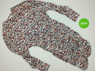 Sukienka w drobne kwiaty – granatowa z białym wzorem - Krój: zwiewna, rozszerzana ku dołowi, długość midi - Rękaw: długi, zakończony delikatną gumką - Dekolt: okrągły - Zapięcie: pęknięcie i guzic...