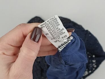 - Materiał: koronkowa siateczka z delikatnym, metalicznym połyskiem na wierzchu; elastyczna podszewka w kolorze granatowym.