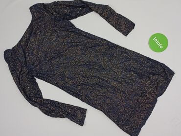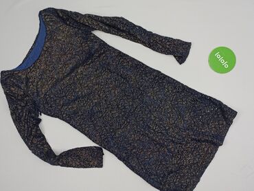 Sukienka damska z połyskiem, dzianina lurex - Fason: dopasowany, mini/midi (wydłużony dół z marszczeniem po bokach) - Rękaw: długi - Dekolt: zabudowany (okrągły) - Kolor: ciemny granat z drobnym, ...