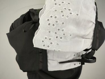 - Rękawy: 3/4, zakończone szerokimi białymi mankietami z haftem angielskim i falowaną krawędzią; przy mankietach czarne, satynowe wstążki do zawiązania
