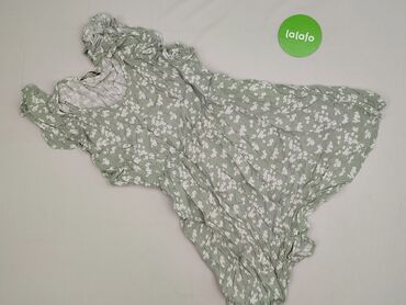Sukienka damska SURE, rozmiar L. - Krój: rozkloszowana, długość midi z lekką falbaną u dołu; krótkie rękawy; dekolt w kształcie litery V. - Wzór: biało‑zielony, roślinny/abstrakcyjny print. - Mate...