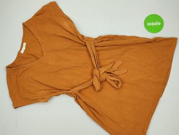 Sukienka damska, pomarańczowa - Fason: ołówkowy z krótkim rękawem - Dekolt: okrągły - Talia: podkreślona szerokim pasem, z przodu delikatne zakładki - Długość: do kolan (midi) - Rozmiar: M (metka)...