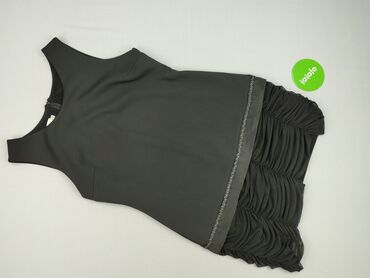 Sukienka damska koktajlowa, rozmiar M. - Kolor: beżowy/ taupe - Fason: dopasowana do sylwetki, z baskinką na wysokości talii i bioder, mini - Dekolt: półokrągły z ozdobnymi aplikacjami (małe czarn...