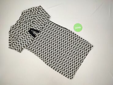Sukienka damska z krótkim rękawem, rozmiar XL. - Kolor: biały w czarne, graficzne wzory (motywy geometryczne i kwiatowe). - Krój: dopasowany, długość przed kolano; dekolt kopertowy w kształcie V....