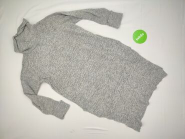 Sukienka dzianinowa z golfem – rozmiar 44 - Kolor: szary melanż z czarno‑szarym geometrycznym nadrukiem (kwadraty i prostokąty) na rękawach, dole i przy golfie - Fason: prosta, luźniejsza, długość...