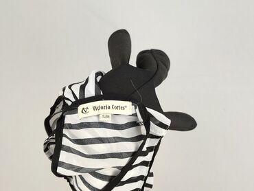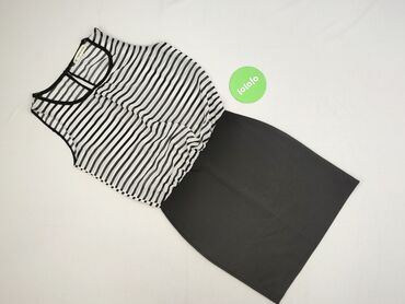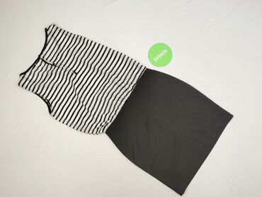 Sukienka damska ołówkowa, dwukolorowa. - Krój: dopasowany, długość do kolan - Góra: gładka, w kolorze koralowym, z krótkim rękawem; z tyłu dekoracyjny suwak - Dół: czarno-białe, poziome pasy - Det...Sukienka damska Victoria Cortes, rozmiar S/M.