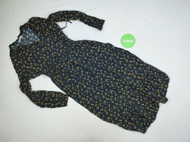 Sukienka damska midi z długim rękawem - Fason: dopasowana góra, rozszerzany dół, długość midi - Dekolt: łódka - Rękaw: długi - Kolor/print: granatowa baza z kwiatowym wzorem w odcieniach złota i n...Sukienka GOLDI, rozmiar M