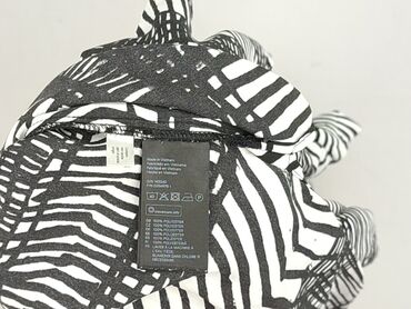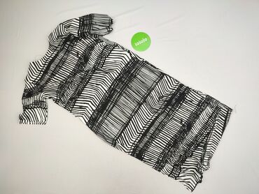 Sukienka H&M - Model: czarna, kopertowy dekolt V - Krótki rękaw - Talia podkreślona wszytą tasiemką/paskiem do zawiązania - Długość do kolan (mini/midi w zależności od wzrostu) - Materiał: 95% wis...Sukienka H&M – czarno‑biały wzór graficzny