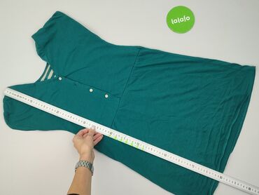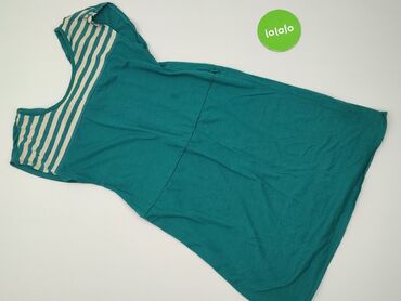 Sukienka/tunika w paski - Kolor: turkusowy w poziome, jaśniejsze i ciemniejsze paski - Fason: lekko odcinana pod biustem, rozszerzana ku dołowi; dekolt w kształcie litery V z zakładkami; krótkie, ...