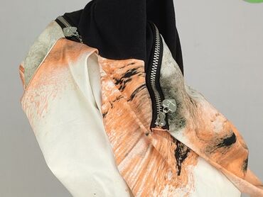 - Dół: materiał o strukturze satynowej z artystycznym printem w odcieniach bieli, brzoskwini i czerni