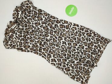 Sukienka damska w panterkę, rozmiar 2XL. - Fason: dopasowany do sylwetki, długość midi, zaokrąglony dekolt, rękaw 3/4. Z przodu drapowanie/kopertowe marszczenie, z tyłu rozcięcie ułatwiające chodz...