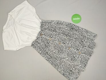 - Fason: wygodna sukienka z elastyczną gumką w pasie; górą przypomina biały T‑shirt z krótkim rękawem, dół jak rozkloszowana spódnica