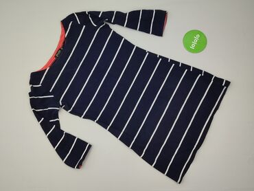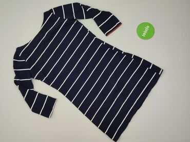 Sukienka dzianinowa w paski – BASIC - Krój: dopasowany, tuba - Dekolt: w kształcie litery V z przodu; krótkie rękawki - Wzór: poziome białe paski na granatowym tle (styl marynistyczny) - Materiał:...