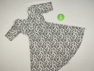 Sukienka damska midi z rękawem 3/4 - Kolor: biało‑czarny - Wzór: abstrakcyjne, faliste motywy z kropkami - Krój: dopasowana góra, lekko rozszerzany dół; długość za kolano (midi) - Dekolt: okrągły ...