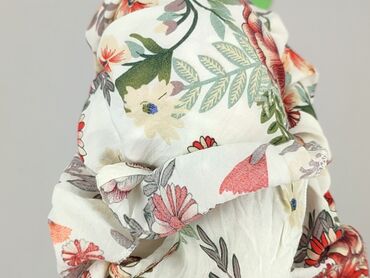 - Print: kwiatowy na jasnym, kremowym tle (róże, maki, liście w odcieniach czerwieni, zieleni, beżu i fioletu)