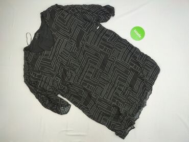 Sukienka damska XL – czarno‑biały wzór patchwork - Krój: kopertowy/zakładany z marszczeniem w pasie, optycznie wysmukla sylwetkę - Rękaw: 3/4 - Długość: do kolan (widoczne na zdjęciach – klasyczna...