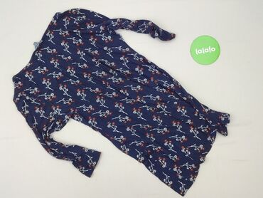 Sukienka damska w kwiaty - Kolor: granatowy z wielobarwnym, roślinnym nadrukiem (liście i kwiaty w odcieniach beżu, różu, błękitu, szarości). - Krój: mini, z kopertowym dekoltem V i delikatnymi za...