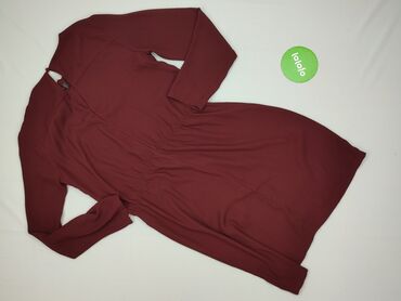 Sukienka damska bordo (wiśniowy/burgund) z długim rękawem, rozmiar 2XL. - Krój: kopertowy dekolt w serek, dopasowana góra; z przodu efektowne marszczenie/zakładki w okolicy talii, które podkreślaj...