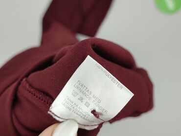Sukienka damska, kolor bordowy. - Rozmiar: M (na metce). - Skład materiału: 65% poliester, 35% bawełna. - Krój: dopasowana góra z krótkim rękawem, rozkloszowany dół. - Dekolt: V z ozdobną, czarną ...