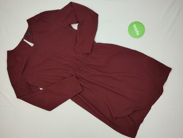 Sukienka damska, rozmiar XXL - Kolor: burgundowy/wiśniowy - Krój: prosta, lekko trapezowa; krótki rękaw; stójka przy szyi - Zapięcie: zamek z tyłu - Dodatki: dekoracyjne patki z przodu (imitacja k...