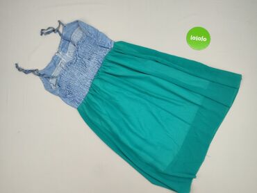 Sukienka letnia na ramiączkach, niebieska w drobny biały kwiatowy wzór. - Krój: rozszerzana, lekko rozkloszowana spódnica, dekolt w kształcie serca. - Ramiączka: wiązane na kokardki, z możliwością...Stan:
