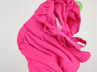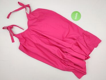 Sukienka damska w kolorze intensywnego różu (fuksja), rozmiar XL. - Krój: rozkloszowany, długość mini. - Dekolt: kwadratowy, szerokie ramiączka z ozdobnymi falbanami. - Talia: podkreślona paskiem/...