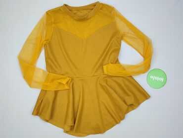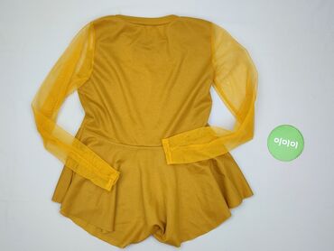 Żółta bluzka damska z lekkiej, ażurowej dzianiny z podszewką. - Krój: luźny, z wydłużonym tyłem (asymetryczny dół – krótszy przód, dłuższy tył). - Rękawy 3/4 z możliwością podpięcia na guzik. - De...