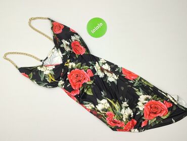 Sukienka damska bez rękawów z rozkloszowanym dołem. Tkanina gładka, lekko mięsista, dobrze trzyma formę. Intensywny, kwiatowy nadruk: czerwone róże, niebieskie i jasnoróżowe kwiaty na czarnym tle. ...