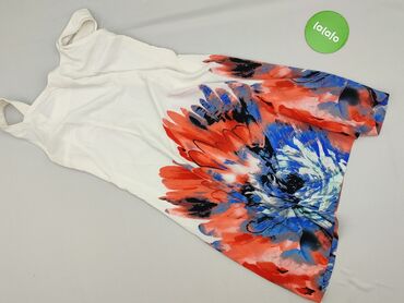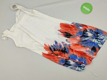 Sukienka damska bez rękawów z kolorowym, kwiatowym nadrukiem akwarelowym. - Fason: dopasowana góra, lekko rozkloszowany dół; długość mini/przed kolano - Dekolt: okrągły - Ramiączka: szerokie, w ko...