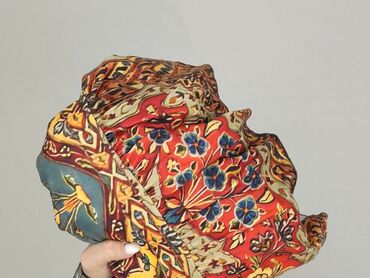 - Wzór: bogaty, etniczno-kwiatowy print łączący odcienie turkusu, czerwieni, żółci i pomarańczu; kontrastowe lamówki w kolorze czerwonym