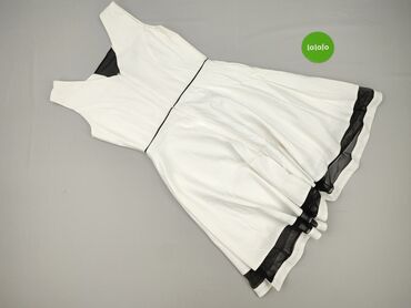 Sukienka damska B’lection, rozmiar 40. - Kolor: jasny, perłowy/beżowo‑kremowy. - Krój: taliowana góra z modelującymi przeszyciami, rozkloszowany dół. - Dekolt: w kształcie litery V. - Rękawy: krót...