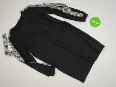 Sukienka damska w kratkę, rozmiar M - Krój: prosta, lekko dopasowana, z krótkim rękawem i okrągłym dekoltem - Wzór: drobna czarno-biała kratka (gingham) - Długość: przed kolano (tuba) - Detale: dw...