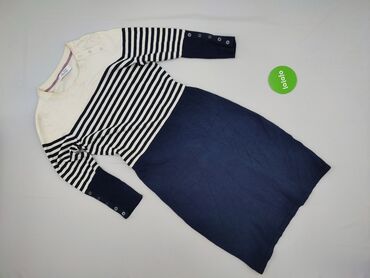 Sukienka damska Pepco, rozmiar 36 - Krój: prosta, T‑shirtowa, długość przed kolano - Wzór: granatowo‑białe, wąskie paski - Rękaw: krótki - Kołnierz: biały, odcinany, okrągły z zapięciem na guzik z ...