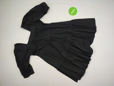 Minimalistyczna czarna sukienka, która łączy prostotę z kobiecą linią dzięki szerokiemu dekoltowi, bufiastym rękawom i falbaniastej spódnicy. Marka: Medicine. Rozmiar: XS. Kolor: czarny.