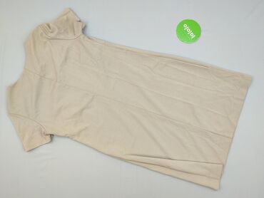 Sukienka damska midi w kolorze beżowym. - Krój: luźny, prosty top z lekko rozszerzanym dołem; długość midi/za kolano. - Rękawy: 3/4. - Dekolt: zabudowany, szeroki kołnierz-stójka. - Materiał: mięk...