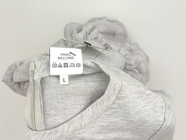 Sukienka damska z krótkim rękawem, rozmiar L. - Kolor: jasnoszary - Wzór: botaniczny z gałązkami, kwiatami i drobnymi motylami/ptaszkami w pastelowych kolorach - Krój: prosta, lekko pudełkowa; okr...