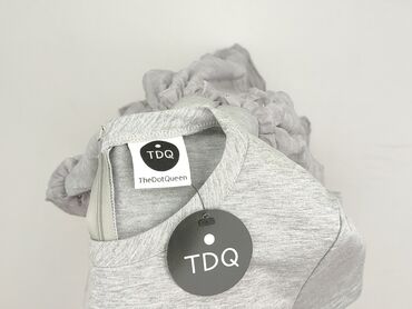 - Detale: okrągły dekolt, dekoracyjna plakietka przy linii bioder, metka i zawieszka producenta TDQ