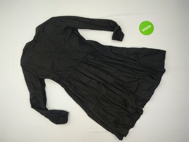 Sukienka damska z długim rękawem, rozmiar M. - Kolor: czarny z białym, drobnym, falującym wzorem w kropki. - Krój: dopasowana góra z zakładanym/dekoltem w kształcie litery V, w talii marszczenie p...
