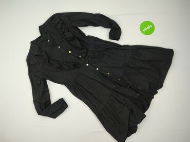 Czarna sukienka damska C.A.S.E., rozmiar S - Fason: rozkloszowana, z szeroką falbaną/warstwowymi wstawkami u dołu - Rękawy: długie, bufiaste, zakończone gumką - Dekolt: okrągły - Zapięcie: mały gu...