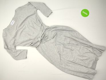 Sukienka damska dzianinowa, szara melanż. - Krój: luźna góra z obniżoną linią ramion, rękawy 3/4; talia podkreślona szerokim, wiązanym paskiem; dół delikatnie marszczony, długość do kolan. - Dekol...Stan: