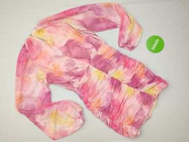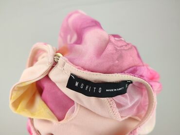Sukienka MOHITO, rozmiar 36. - Krój: mini z rozkloszowanym dołem i delikatnymi falbanami, kopertowy dekolt V. - Rękawy: długie, lekko bufiaste, zakończone gumką. - Wzór: kwiatowy, wielobarwny na c...